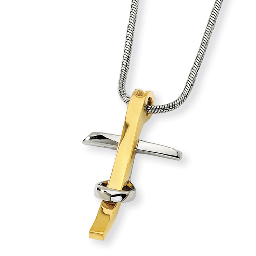 Stainless Steel And IP-plated Cross Pendant Necklace