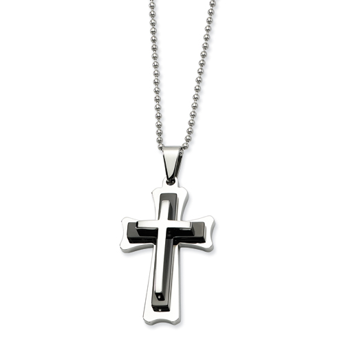 Stainless Steel Black Acrylic & Polished Cross Pendant 24 in. Necklace chain