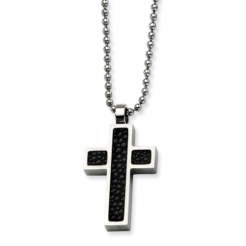 Stainless Steel Black Stingray Cross Pendant 24in Necklace chain