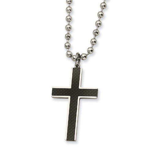 Stainless Steel Carbon Fiber Cross Pendant Necklace