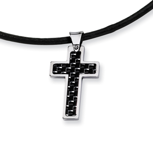 Stainless Steel Carbon Fiber Cross Pendant