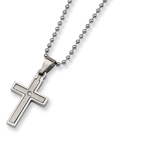 Stainless Steel Diamond Accent Cross Necklace