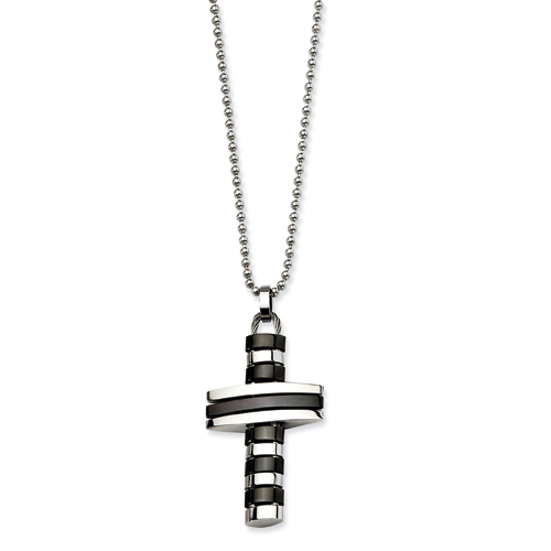 Stainless Steel IP Black Plated Cross Pendant 18in Necklace chain