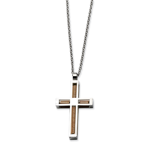 Stainless Steel Polished & Rose Gold Plated Cross Pendant 22in Necklace chain