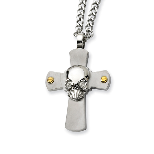 14K Gold & Rhodium 3-D Hollow Cross Pendant