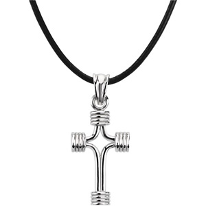 Sterling Silver 24.25X15.00 TUBULAR CROSS WITH CORD Tubular Cross With Cord