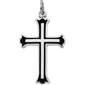Sterling Silver 25.00 X Cross With Black Enamel & 18.00 Inch Chain