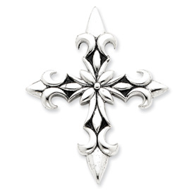 Sterling Silver Green Cubic Zirconia & Marcasite Cross Pendant