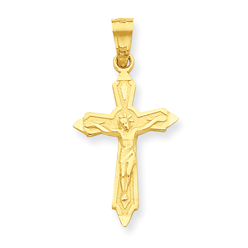 14K Two-Tone Gold INRI Hollow Crucifix Pendant