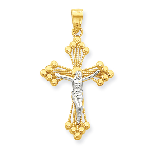 14K Two-Tone Gold INRI Hollow Crucifix Pendant