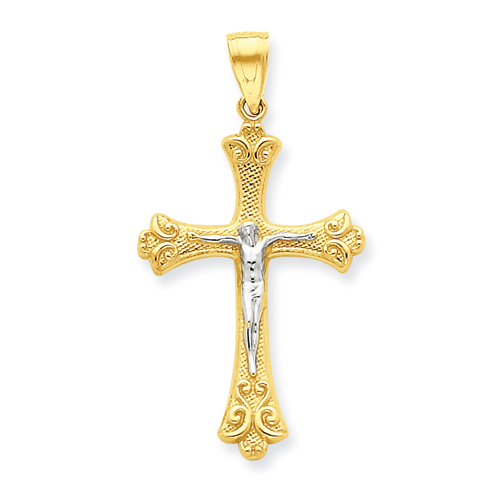 14k Two-Tone Diamond-Cut Crucifix Pendant