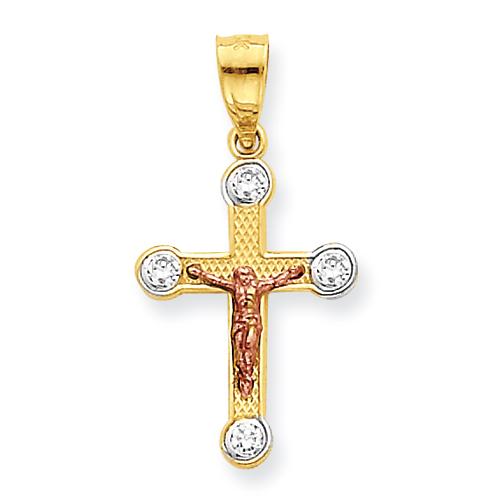 10k Two-tone Small CZ Crucifix Pendant
