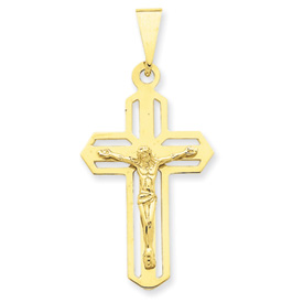 14K Two-Tone Gold INRI Hollow Crucifix Pendant