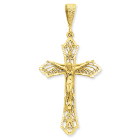 14K Gold Satin & Diamond-Cut Crucifix Pendant