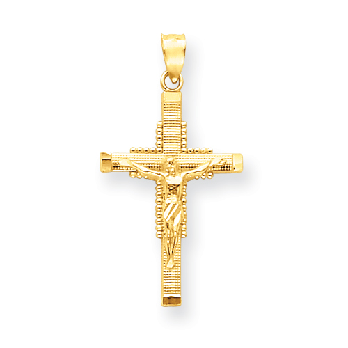 14K Petite Beaded Textured Crucifix