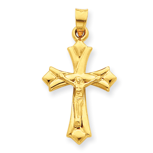 14K Small Floret Tipped Polished Crucifix