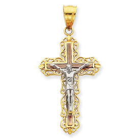 14K Tri-Color Gold Diamond-Cut Crucifix Pendant
