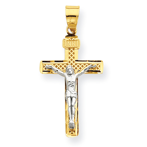 14K Two-tone D/C Medium Block Lattice Cross w/Crucifix Pendant