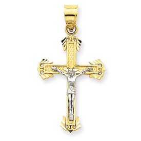 14K Two-Tone Gold Diamond Cut Crucifix Pendant