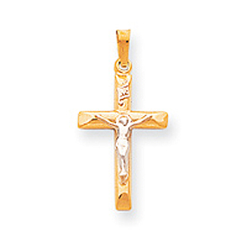 14K Two-Tone Gold INRI Hollow Crucifix Pendant