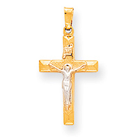 14K Two-Tone Gold INRI Hollow Crucifix Pendant
