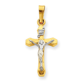 14K Two-Tone Gold INRI Hollow Crucifix Pendant