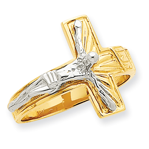 14k Two-tone Polished & Diamond-Cut Mens Crucifix Ring