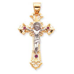 14K Two-Tone Polished With Red Cubic Zirconias Crucifix Pendant