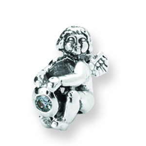 Sterling Silver Reflections March Cubic Zirconia Antiqued Bead