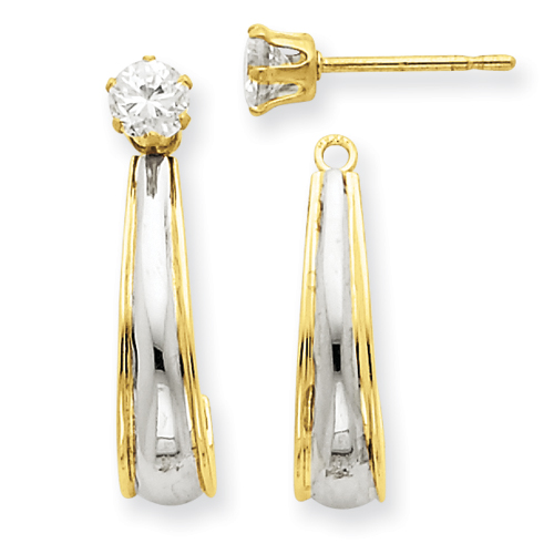 14k & Rhodium J-Hoop with CZ Stud Earring Jackets
