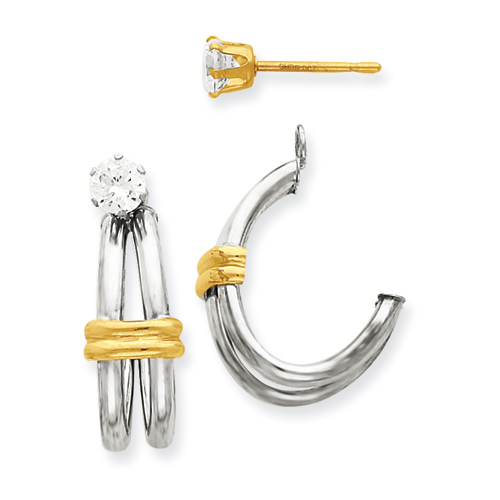 14k Two-tone J Hoop with CZ Stud Earring Jackets