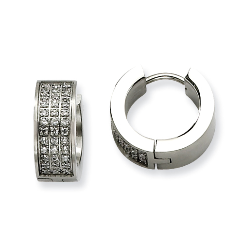 Stainless Steel Satin with White CZ Stones Hinged Hoop Earrings