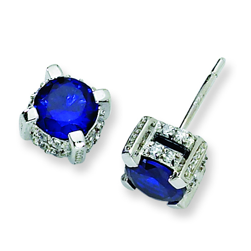 Sterling Silver 6.5mm Synthetic Sapphire & Cubic Zirconia Stud Earrings