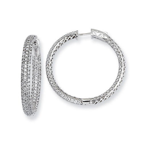 Sterling Silver .75 inch diameter CZ Hoop Earrings