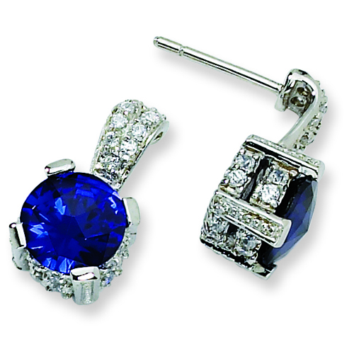 Picture of Sterling Silver 8mm Rose-cut Synthetic Sapphire & Cubic Zirconia Dangle Post Earrings