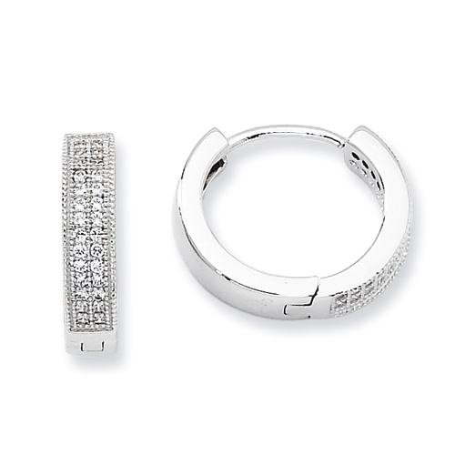Sterling Silver & CZ Fancy Hinged Hoop Earrings