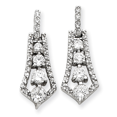 Sterling Silver CZ Diamond Cut Drop Earrings