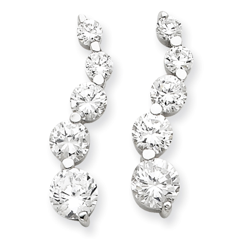 Sterling Silver CZ Diamond Cut Drop Earrings