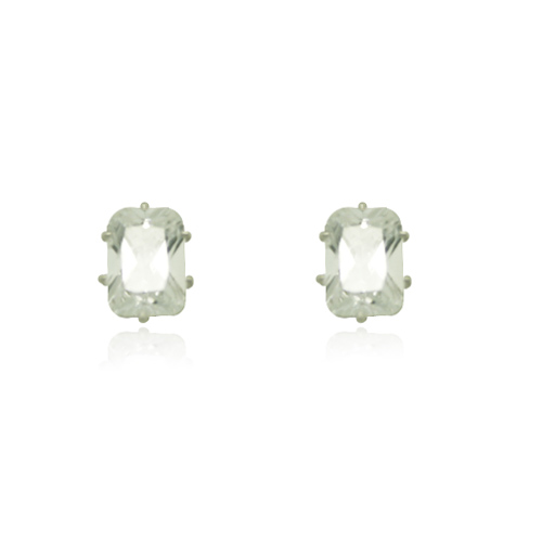 Sterling Silver Green Cubic Zirconia Square Earrings