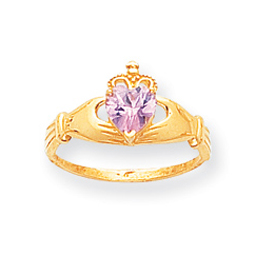 14K Gold CZ June Birthstone Claddagh Heart Ring