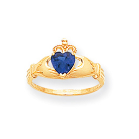 14K Gold CZ September Birthstone Claddagh Heart Ring