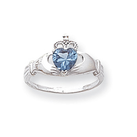 Picture of 14K White Gold CZ December Birthstone Claddagh Heart Ring