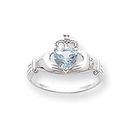 Picture of 14K White Gold CZ March Birthstone Claddagh Heart Ring