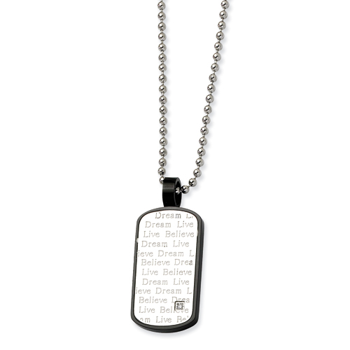 Stainless Steel Black PVD w/ CZ Pendant 24 in. Necklace chain