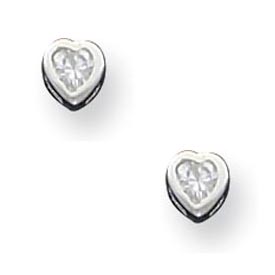 Sterling Silver 3mm CZ Heart Bezel Stud Earrings