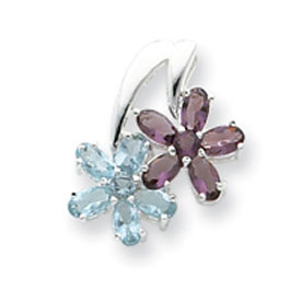 Sterling Silver Blue & Purple CZ Floral Pendant