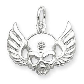 Sterling Silver Cubic Zirconia Skull with Wings Charm