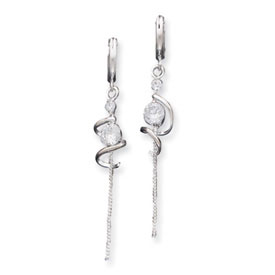 Picture of Sterling Silver Spiral Cz Dangle Hoop Earrings