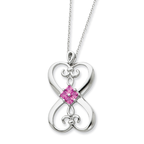 Sterling Silver Synthetic Pink Stone Loyalty 18" Necklace