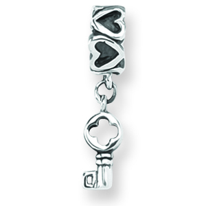 Sterling Silver Reflections Key Dangle With Hearts Bead